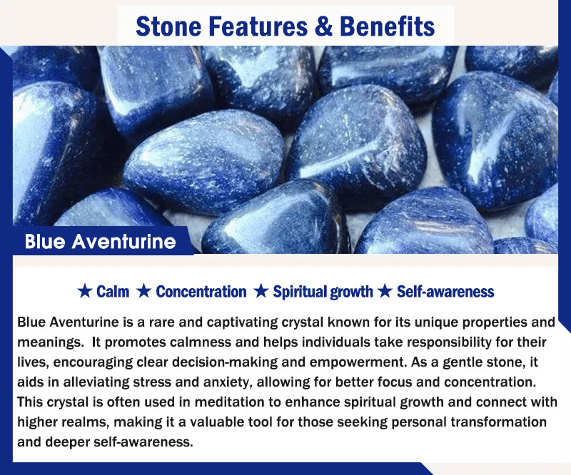 Blue Aventurine is a rare and captivating crystal known for its unique properties and meanings. It promotes calmness and helps individuals take responsibility for their lives. encouraging clear decision-making and empowerment. As a gentle stone. it aids in alleviating stress and anxiety. allowing for better focus and concentration. This crystal is often used in meditation to enhance spiritual growth and connect with higher realms. making it a valuable tool for those seeking personal transformation and deeper self-awareness.