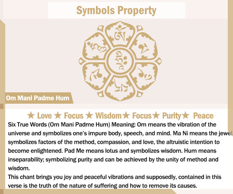 These Six True Words 'Om Mani Padme Hum-are the most common mantra in Tibet. This mantra produces the sound and vibration. which allows you to feel at one with the universe. The mantra is considered to have high spiritual and creative power.