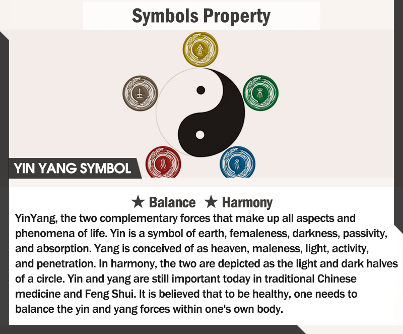 YinYang. the two complementary forces that make up all aspects and phenomena of life. Yin is a symbol of earth. femaleness. darkness. passivity. and absorption. Yang is conceived of as heaven. maleness. light. activity. and penetration. In harmony. the two are depicted as the light and dark halves of a circle. Yin and yang are still important today in traditional Chinese medicine and Feng Shui. It is believed that to be healthy. one needs to balance the yin and yang forces within one's own body.